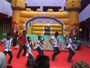 So we just packed together, had some dinner until we nearly exploded, and planned the next day in a nearby village school. It was the last day of school, so good students were rewarded with a day on the bouncy castle. While the bad students were punished with a day on the bouncy castle.