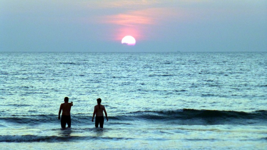 Sunset swim after a bouncy day in Goa, India